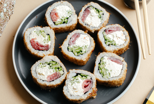 Nori,düyü,xiyar,krem pendir,tempura...