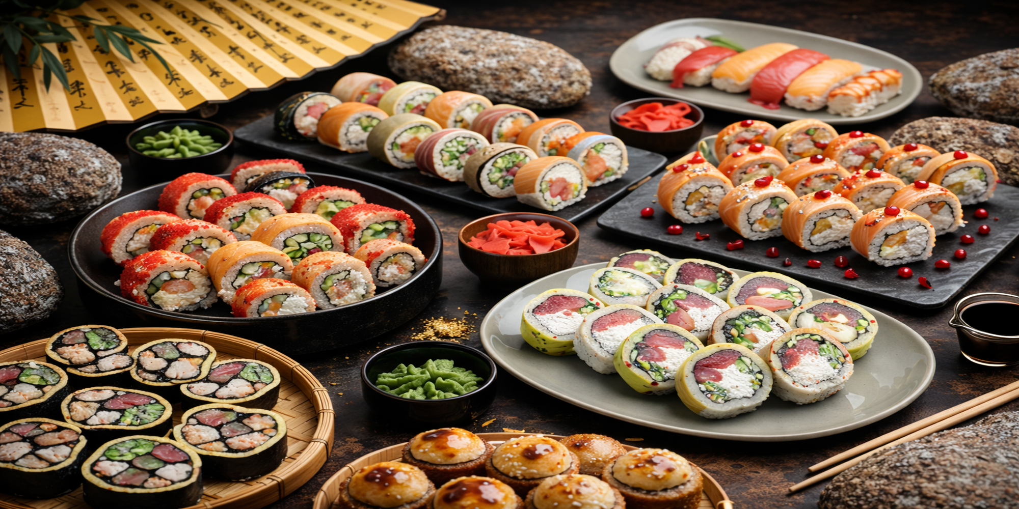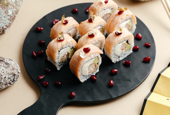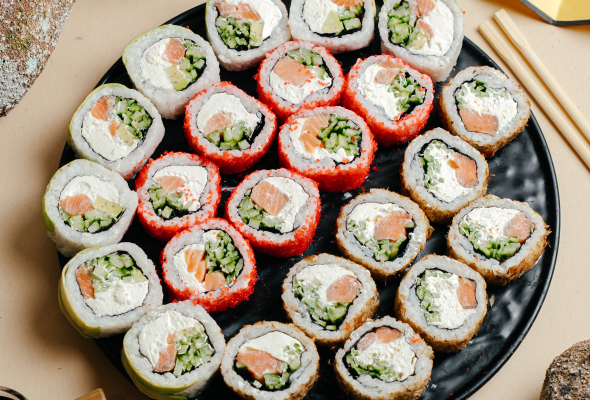 Nori,düyü,qızıl balıq,xiyar,krem...