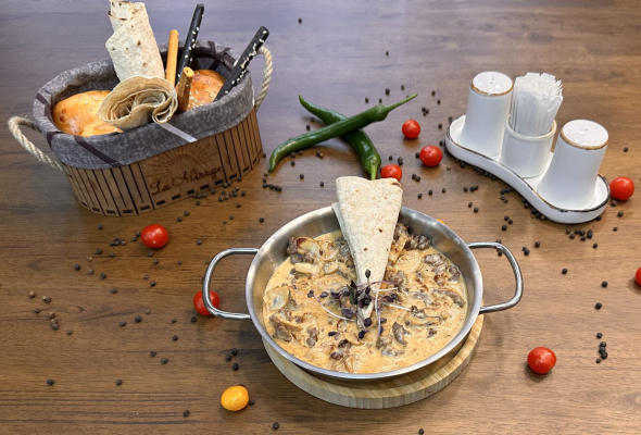 Dana filesi, göbələk sousu, qaymaq,...