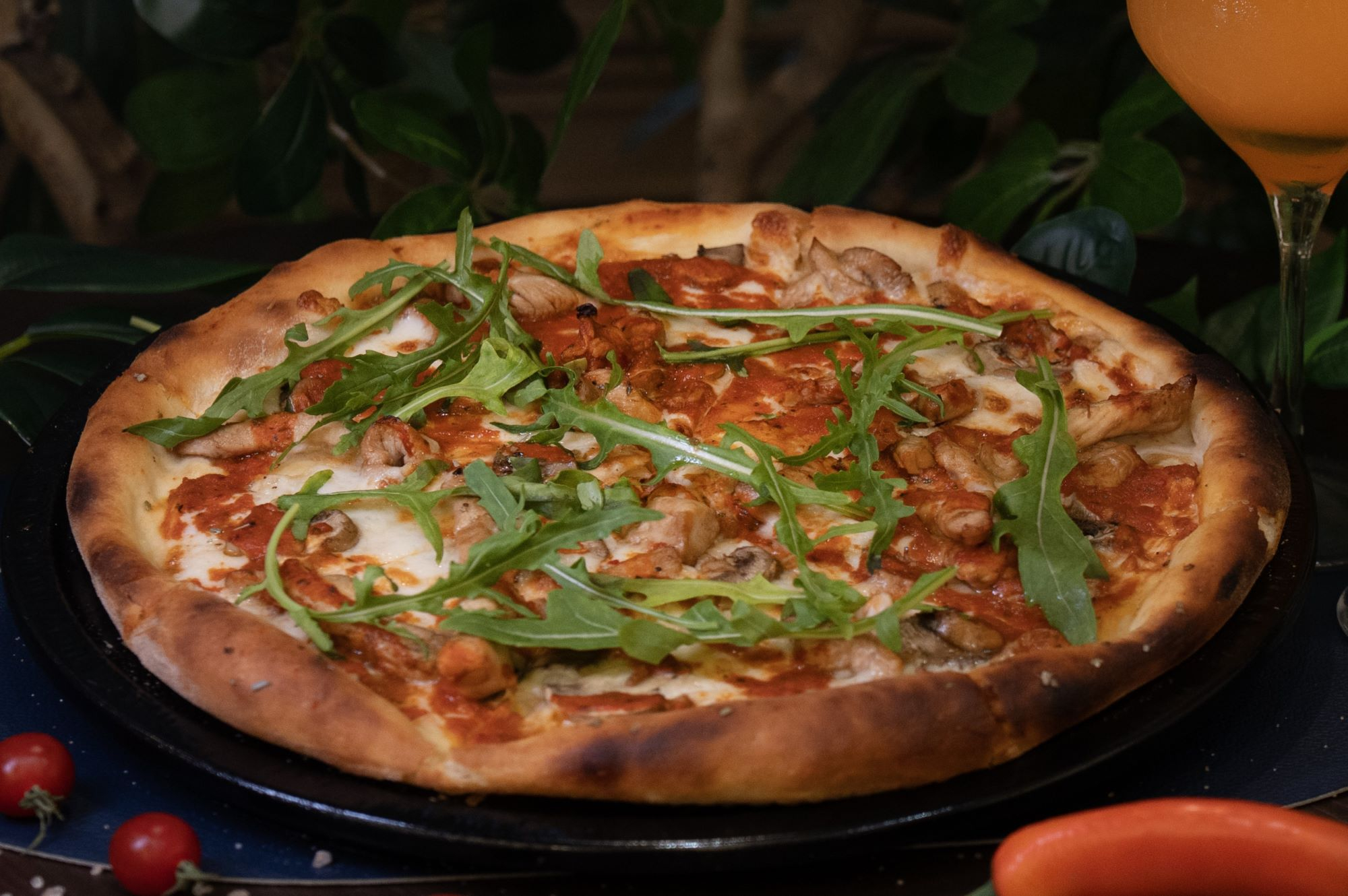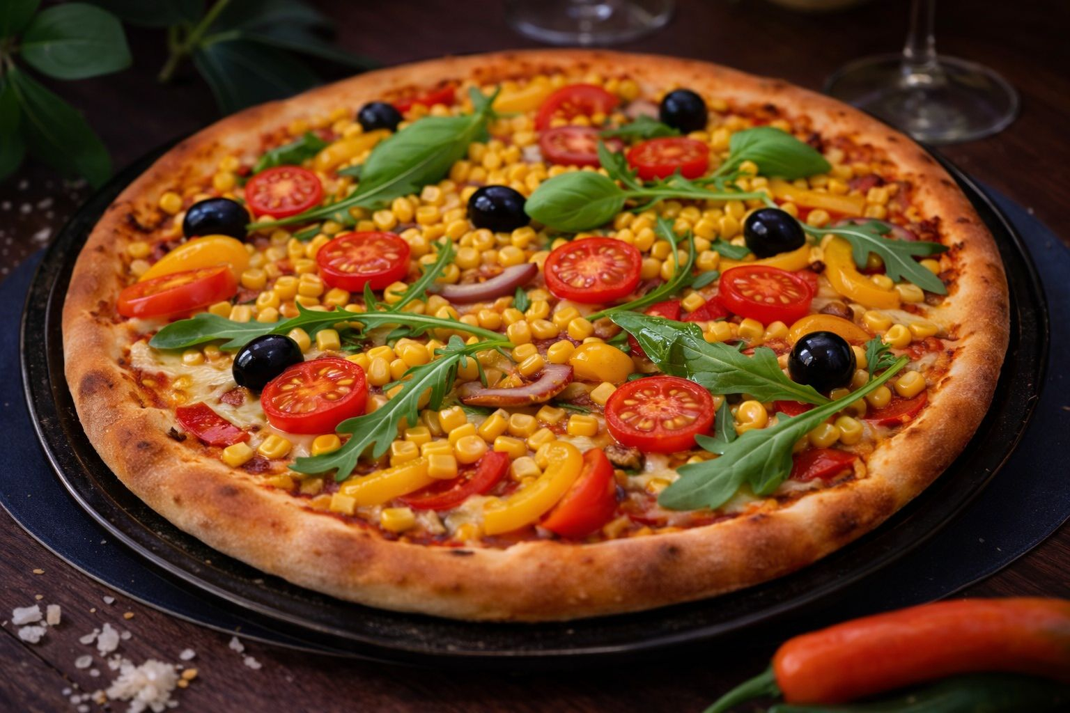 Göbələk, rəngli bibər, pomidor,...