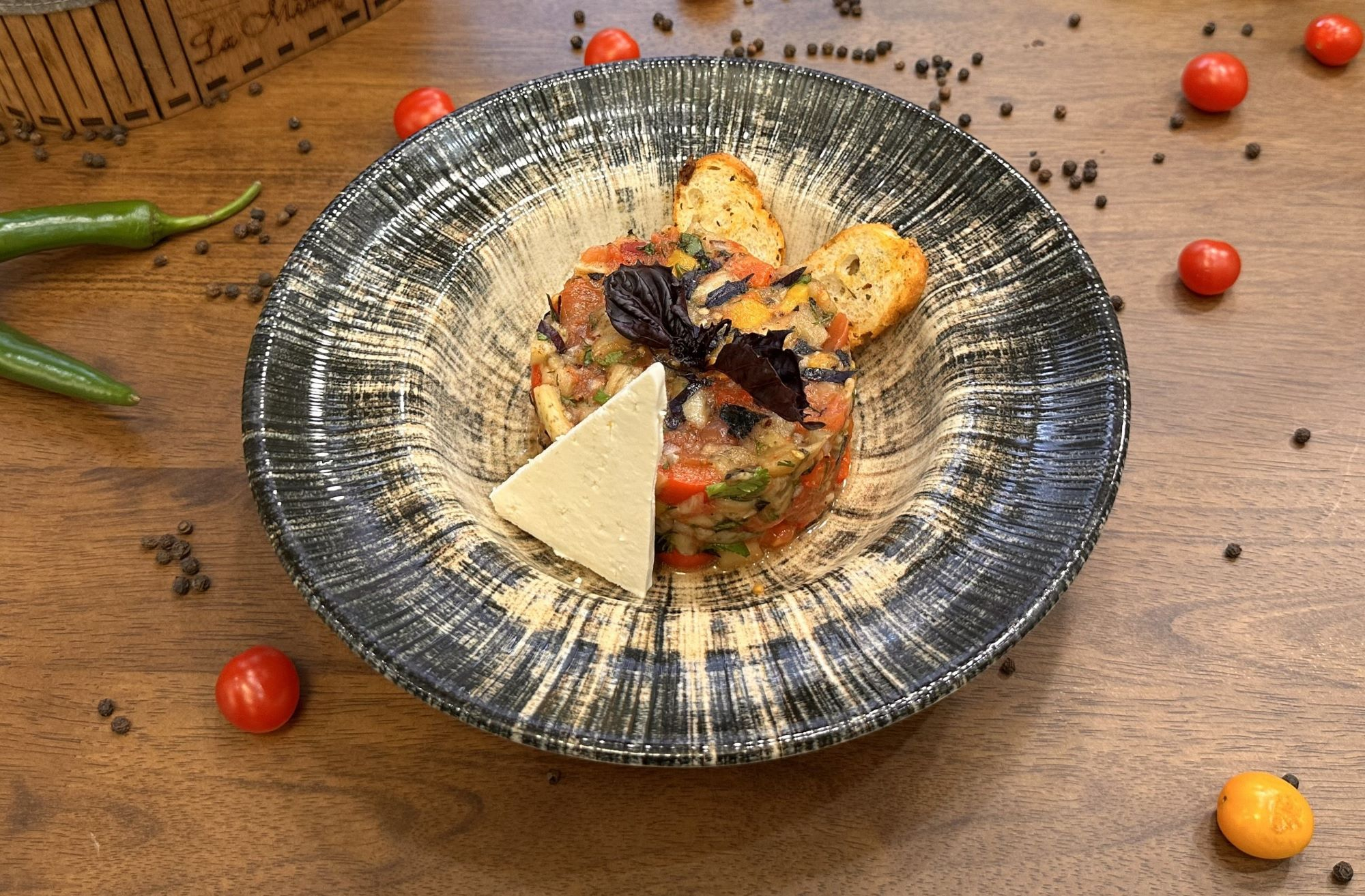Qızardılmış badımcan, pomidor,...