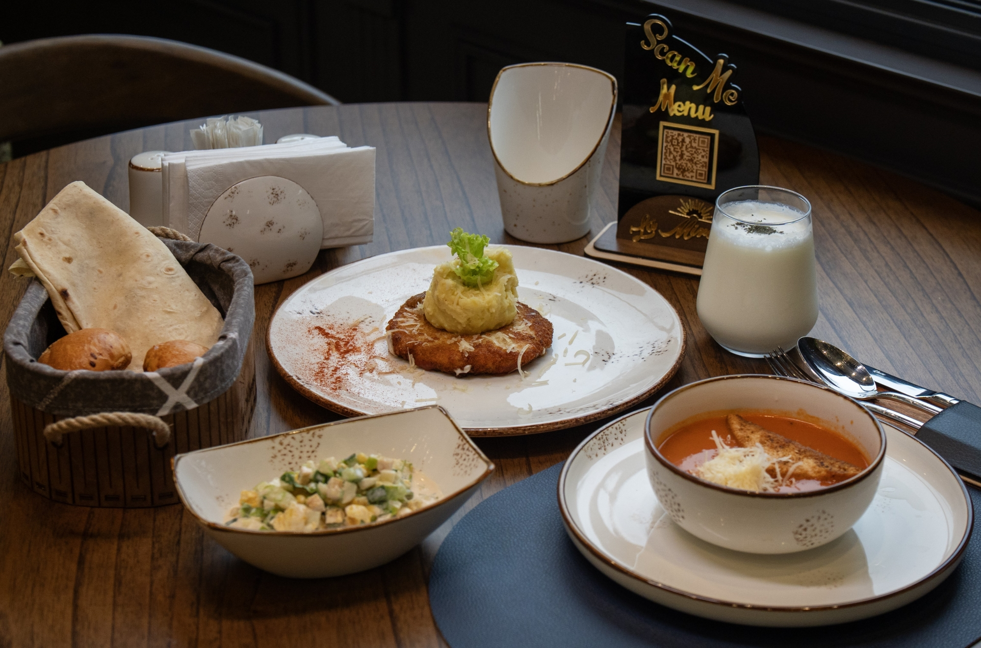 Tomat şorbası Toyuq kotleti - qarnir...