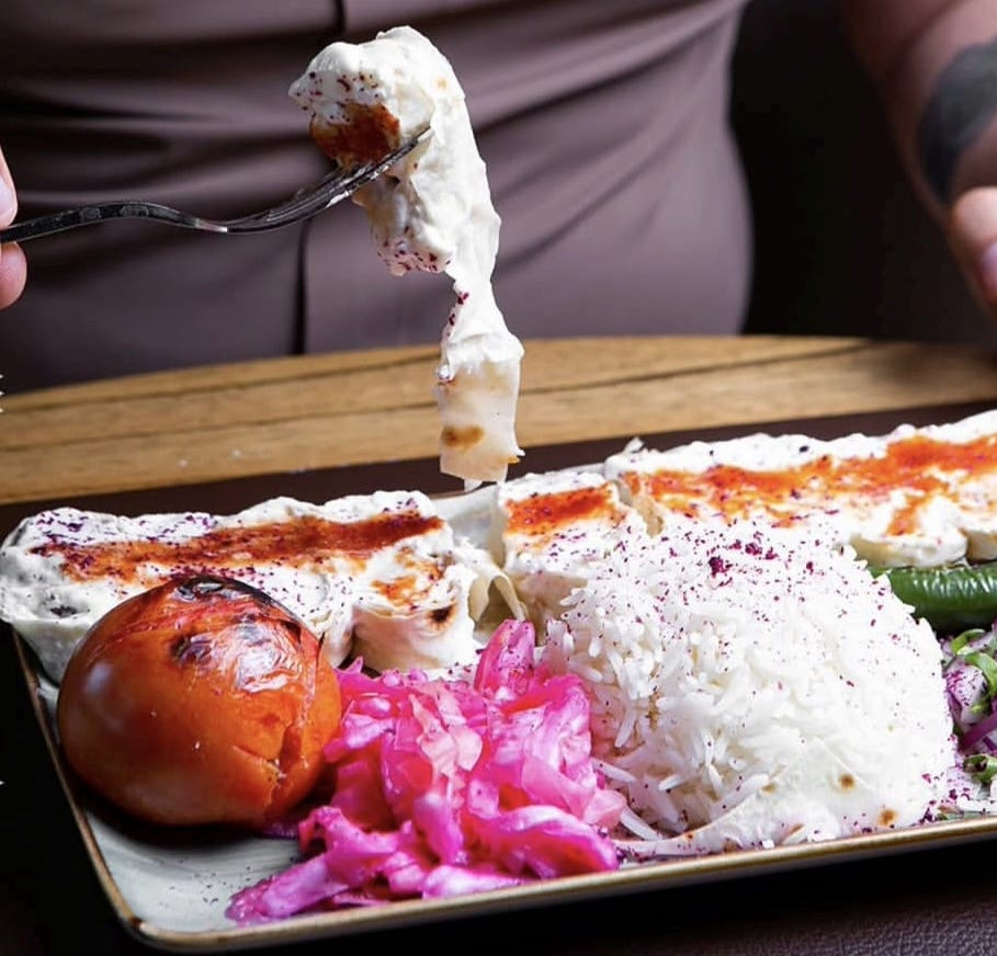 quzu əti, lavaş, qatıq, pul bibər,...