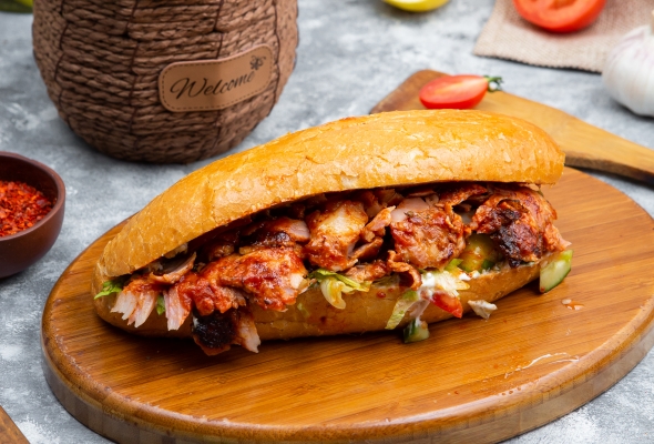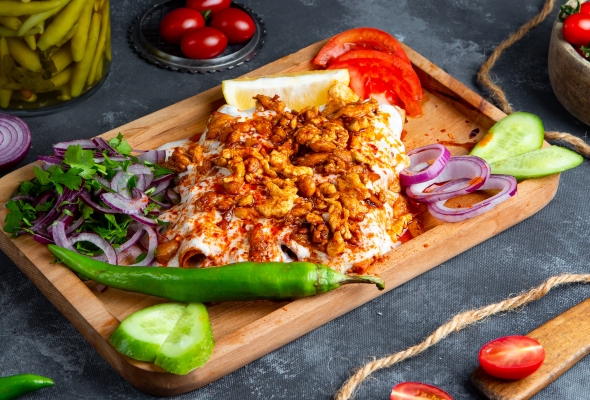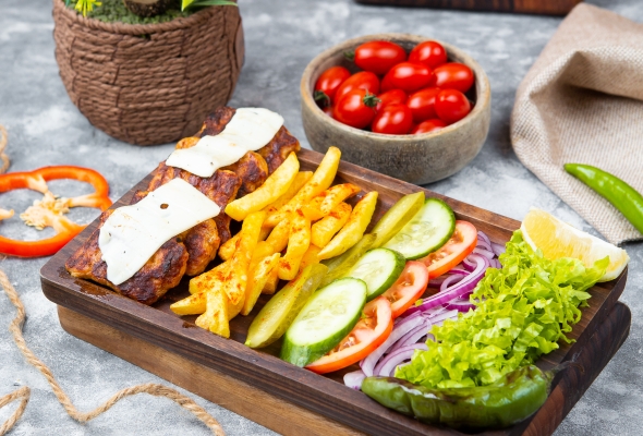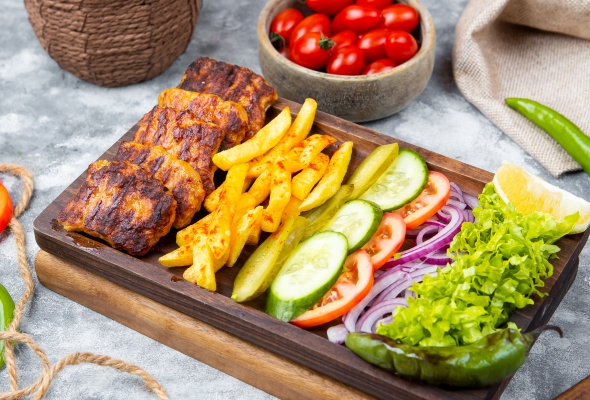Toyuq əti, Pomidor, Xiyar, Soğan,...