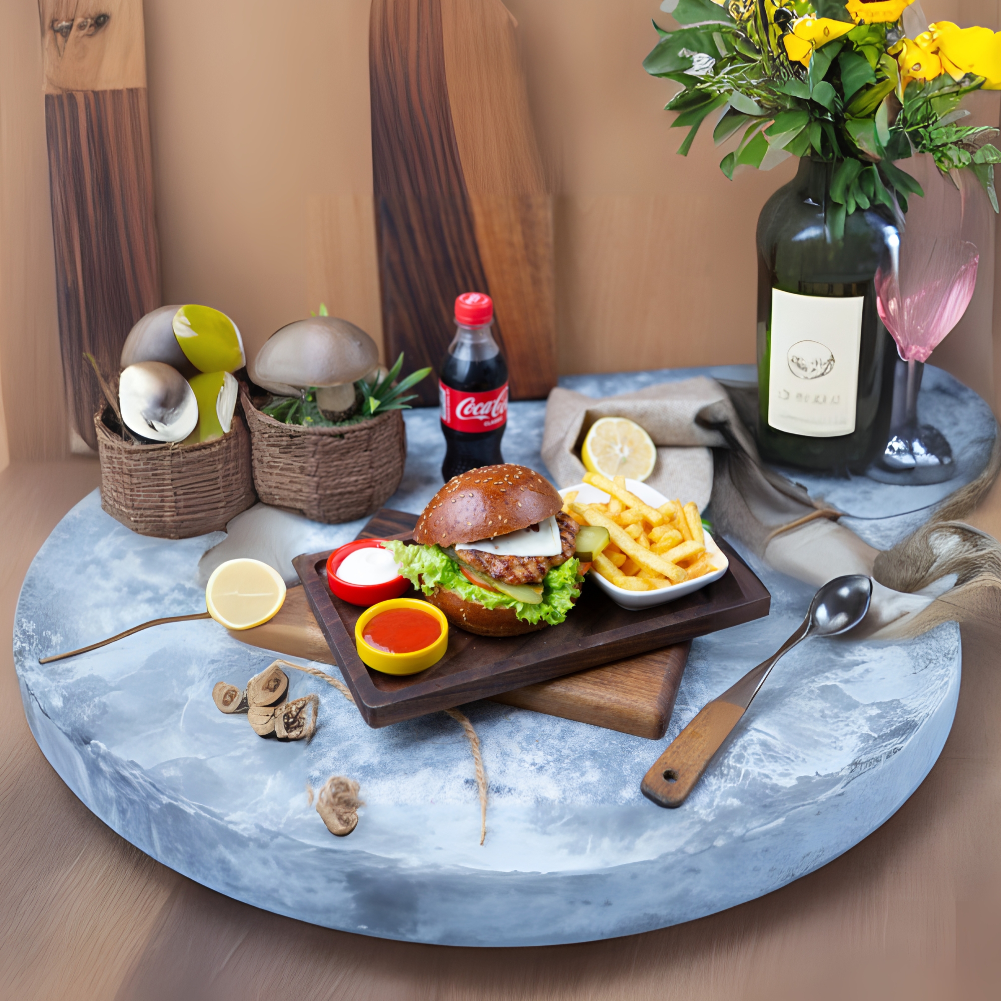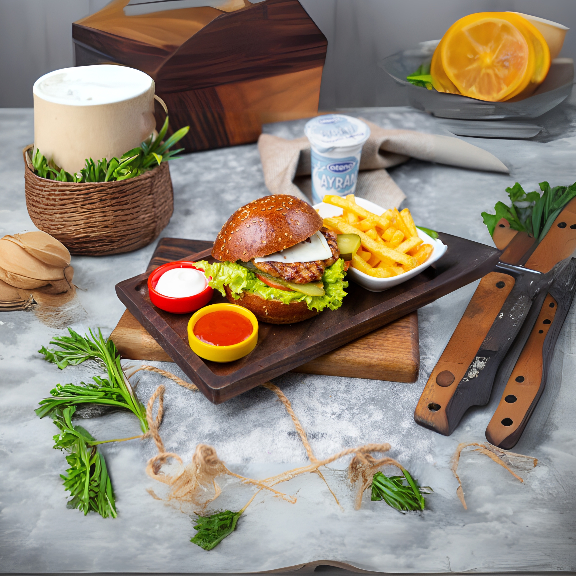 Toyuq əti, Mayonez, Özəl sous,...