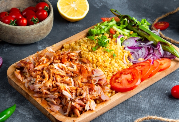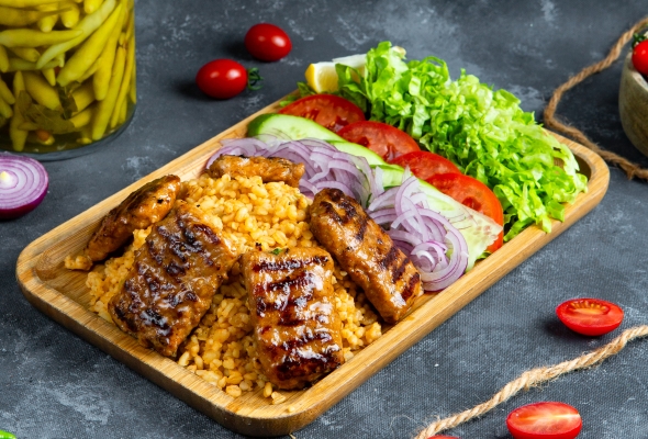 Toyuq əti, Bulqur, Pomidor, Xiyar,...
