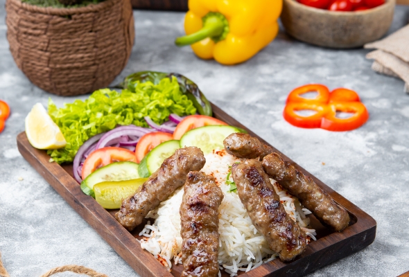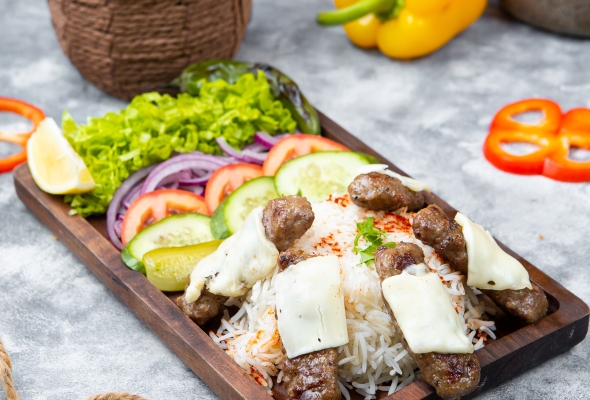 Dana əti, Düyü, Pomidor, Xiyar,...