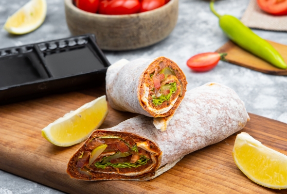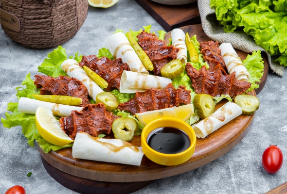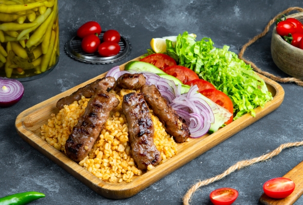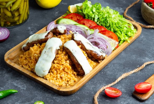 Dana əti, Bulqur, Pomidor, Xiyar,...