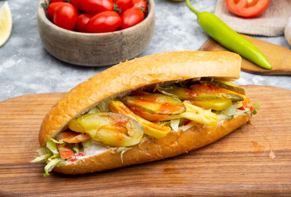 Toyuq əti, Pomidor, Turşu xiyar,...